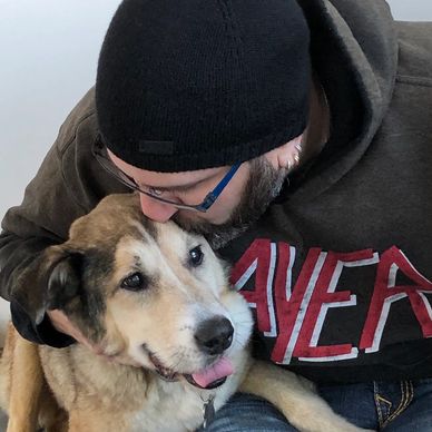 Oliver was a blind and deaf senior rescue who became co-owner Roy Barbe's best friend. He is sorely missed.