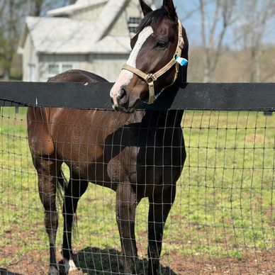 This son of Bellamy Road was rescued at a kill-pen by a Henley Farms family member. Now he is our #1 companion horse.